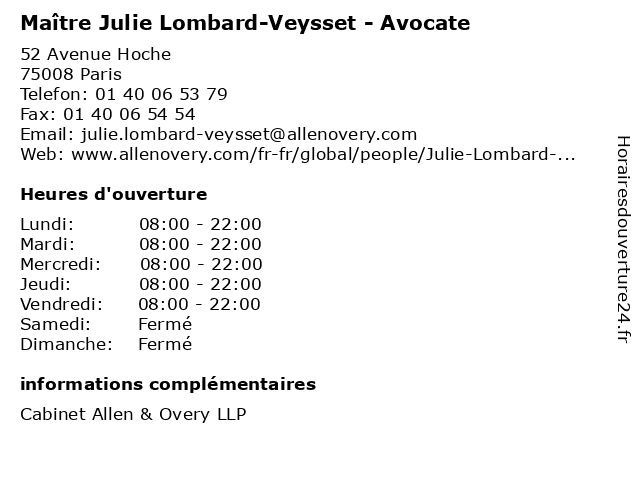 1 Maître Julie Métois - Avocate (Distance: 0,00 km) 52 Avenue Hoche, 75008 Paris avocate, avocats, cabinet, conseils, contentieux, julie, juridique, justice, litiges, maître, métois, services 2 Maître Julie Parent - Avocate (Distance: 0,00 km) 52 Avenue Hoche, 75008 Paris avocate, avocats, cabinet, conseils, contentieux, julie, juridique, justice, litiges, maître, parent, services 3 Maître Julie Crastre - Avocate (Distance: 0,12 km) 47 Avenue Hoche, 75008 Paris avocate, avocats, civils, crastre, droits, julie, juridiques, maître 4 Dr Julie Goetgheluck - Gynécologue obstétricienne (Distance: 0,44 km) 17 Rue Daru, 75008 Paris bebe, dr, goetgheluck, gynecologie, gynécologue, julie, maternite, obstetrique, obstétricienne 5 Maître Julie Delattre - Avocate (Distance: 0,45 km) 11-13 avenue de Friedland, 75008 Paris avocate, avocats, cabinet, conseils, contentieux, delattre, julie, juridique, justice, litiges, maître, services 6 Maître Julie Falcon de Longevialle - Avocate (Distance: 0,48 km) 1 Bis avenue Foch, 75116 Paris avocate, avocats, cabinet, conseils, contentieux, de, falcon, julie, juridique, justice, litiges, longevialle, maître, services |
