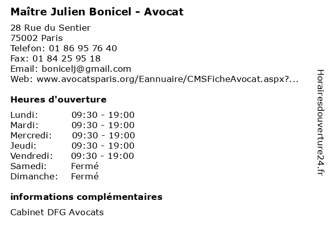 1 Maître Julien Bonicel - Avocat (Distance: 7,28 km) 30 Cours Marigny, 94300 Vincennes avocat, avocats, bonicel, civils, droits, julien, juridiques, maître 2 Dr Julien Rouche - Gynécologue médical (Distance: 0,22 km) 7 Rue Bergère, 75009 Paris consultation, docteur, dr, gynécologue, julien, med, médecin, médical, rouche, traitement 3 Maître Julien Saint-Félix - Avocat (Distance: 0,24 km) 21 rue d'Aboukir, 75002 Paris avocat, avocats, cabinet, conseils, contentieux, félix, julien, juridique, justice, litiges, maître, saint, services 4 Restaurant Bouillon Julien (Distance: 0,47 km) 16 Rue du Faubourg Saint-Denis, 75010 Paris bar, bouillon, brunch, julien, restaurant, restauration 5 Dr. Faugeras Julien - Psychologue (Distance: 0,55 km) 9 Rue Ambroise Thomas, 75009 Paris docteur, dr., faugeras, julien, medecins, psychologue, sante 6 |