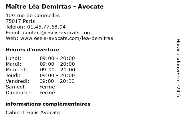 1 Dr Léa Athias - Médecin généraliste (Distance: 0,12 km) 97 Rue Jouffroy d'Abbans, 75017 Paris athias, consultation, docteur, dr, généraliste, léa, med, médecin, traitement 2 Dr Léa Melka - Gynécologue médical et obstétrique (Distance: 0,29 km) 96 Rue Pierre Demours, 75017 Paris consultation, docteur, dr, et, gynécologue, léa, med, melka, médecin, médecine, médical, obstétrique, traitement 3 Léa Delbrel - Diététicienne (Distance: 0,36 km) 172 Rue de Courcelles, 75017 Pau cabinet, delbrel, diététicien, diététicienne, diététique, léa, medical, secrétariat 4 Maître Léa Monel - Avocate (Distance: 0,55 km) 31 avenue Hoche, 75008 Paris avocat, avocate, droit, léa, maître, monel, négociation 5 Maître Léa Debabi - Avocate (Distance: 0,92 km) 136 avenue des Champs Elysées, 75008 Paris avocate, avocats, cabinet, conseils, contentieux, debabi, juridique, justice, litiges, léa, maître, services 6 Maître Léa Bensoussan - Avocate (Distance: 1,19 km) 12 rue Lincoln, 75008 Paris avocate, avocats, bensoussan, cabinet, conseils, contentieux, juridique, justice, litiges, léa, maître, services |