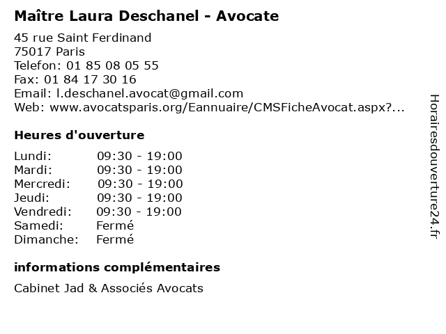 1 Maître Laura Meponfack Ngoune - Avocate (Distance: 0,04 km) 25 rue Saint Ferdinand, 75017 Paris avocate, avocats, cabinet, conseils, contentieux, juridique, justice, laura, litiges, maître, meponfack, ngoune, services 2 Maître Laura Dalibert - Avocate (Distance: 0,37 km) 27 rue Duret, 75116 Paris avocate, avocats, cabinet, conseils, contentieux, dalibert, juridique, justice, laura, litiges, maître, services 3 Maître Laura Ceccarelli-Le Guen - Avocate (Distance: 0,48 km) 6 Rue Duret, 75116 Paris avocat, avocate, ceccarelli, ceccarelli–le, droit, guen, laura, le, maître, négociation 4 Maître Laura Rogues - Avocate (Distance: 0,48 km) 6 Rue Duret, 75116 Paris avocat, avocate, droit, laura, maître, négociation, rogues 5 Maître Laura Lagarde - Avocate (Distance: 0,48 km) 7 Rue Le Sueur, 75116 Paris avocate, avocats, cabinet, conseils, contentieux, juridique, justice, lagarde, laura, litiges, maître, services 6 Laura Lebahr - Hypnothérapeute (Distance: 0,81 km) 49 Rue Pierre Demours, 75017 Paris hypno, hypnose, hypnothérapeute, laura, lebahr, sante |