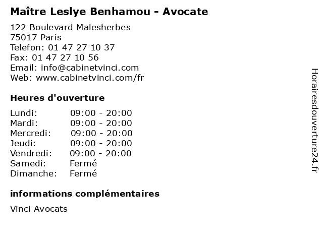 1 Maître Jeremy Benhamou - Avocat (Distance: 0,21 km) 32 Rue Jouffroy d'Abbans, 75017 Paris avocat, avocats, benhamou, cabinet, conseils, contentieux, jeremy, juridique, justice, litiges, maître, services 2 Dr Jonathan Benhamou - ORL (Distance: 0,24 km) 48 Rue de Tocqueville, 75017 Paris benhamou, dr, jonathan, laryngologie, orl, oto, rhino 3 Laure Benhamou - Masseur-kinésithérapeute (Distance: 0,77 km) 4 rue Théodule Ribot, 75017 Paris 75017, benhamou, kinésithérapeute, laure, masseur, paris 4 Maître Diane Benhamou - Avocate (Distance: 0,87 km) 93 avenue Niel, 75017 Paris avocate, avocats, benhamou, cabinet, conseils, contentieux, diane, juridique, justice, litiges, maître, services 5 Dr Yves Benhamou - Gastro-entérologue et hépatologue (Distance: 1,92 km) 5 bis Rue du Dôme, 75008 Paris benhamou, consultation, docteur, dr, entérologue, et, gastro, hépatologue, med, médecin, traitement, yves 6 Olivier Benhamou - La Thérapie Capillaire (Distance: 1,98 km) 18 Rue Duret, 75018 Paris balayage, benhamou, brushing, capillaire, coiffeur, coiffure, coloration, coupe, la, olivier, thérapie |