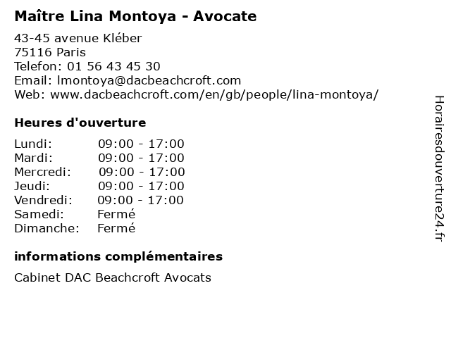 1 Maître Lina El Medjadji - Avocate (Distance: 0,55 km) 62 avenue Marceau, 75008 Paris avocate, avocats, cabinet, conseils, contentieux, el, juridique, justice, lina, litiges, maître, medjadji, services 2 Maître Lina Bouabdallah - Avocate (Distance: 0,55 km) 83 avenue Foch, 75116 Paris avocate, avocats, bouabdallah, cabinet, conseils, contentieux, juridique, justice, lina, litiges, maître, services 3 Maître Lina Chaif - Avocate (Distance: 0,56 km) 66 avenue Marceau, 75008 Paris avocat, avocate, chaif, droit, lina, maître, négociation 4 Maître Maria Bermudez Montoya - Avocate (Distance: 0,99 km) 16 Avenue de Friedland, 75008 Paris avocat, avocate, bermudez, droit, maria, maître, montoya, négociation 5 Lina Nueva (Distance: 1,28 km) 2 Place de la Porte Maillot, 75017 Paris accessoires, beaute&sante, cafe, chaussures, enfants, lina, mode femmes, mode hommes, nueva, optique, restaurant, service, sport 6 |