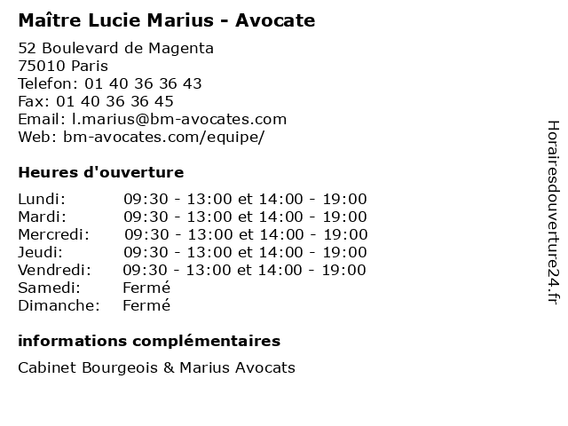 | Lundi | 09:30-13:00 et 14:00-19:00 |