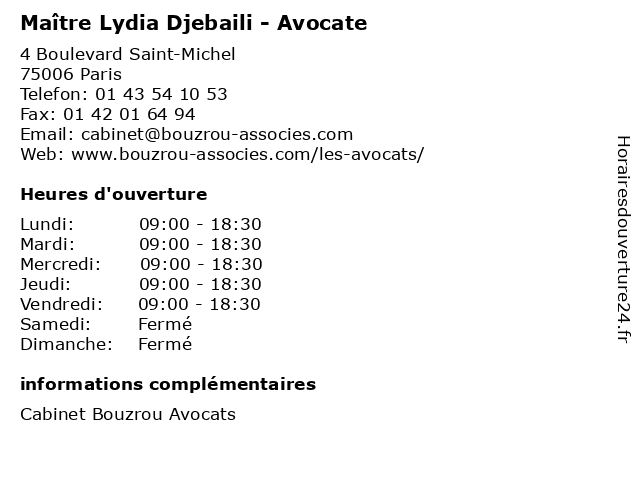 | Lundi | 09:00-18:30 |