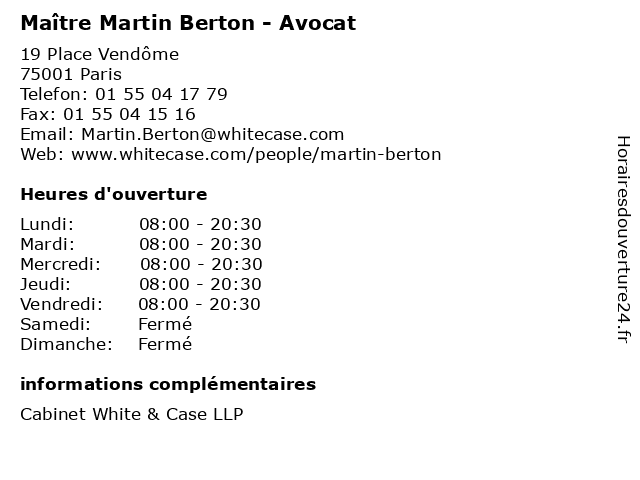 1 Maître Alexandre Martin - Avocat (Distance: 0,00 km) 19 Place Vendôme, 75001 Paris alexandre, avocat, avocats, cabinet, conseils, contentieux, juridique, justice, litiges, martin, maître, services 2 Maître Simon Martin-Gousset - Avocat (Distance: 0,00 km) 19 Place Vendôme, 75001 Paris avocat, avocats, cabinet, conseils, contentieux, gousset, juridique, justice, litiges, martin, maître, services, simon 3 Dr.Martin Claudie - Hépato-Gastroentérologue (Distance: 0,42 km) 31-33 Rue Caumartin, 75009 Paris claudie, docteur, dr.martin, gastroentérologue, hépato, medecins, sante 4 Maître Martin Hauser - Avocat (Distance: 0,64 km) 29 Rue du Faubourg Saint-Honoré, 75008 Paris avocat, avocats, cabinet, conseils, contentieux, hauser, juridique, justice, litiges, martin, maître, services 5 JB Martin (Distance: 0,85 km) 94 Rue Saint-Lazare, 75009 Paris boutique, jb, jb martin, magasin, martin, outlet 6 Maître Jeanne Martin - Avocate (Distance: 1,03 km) 7 Rue du Bac, 75007 Paris avocate, avocats, cabinet, conseils, contentieux, jeanne, juridique, justice, litiges, martin, maître, services |