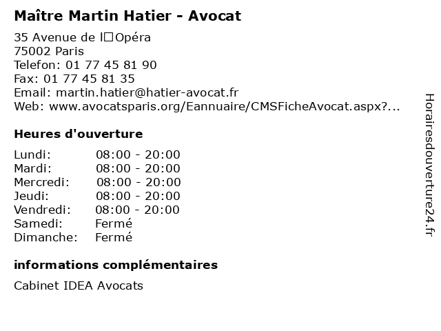 | 1 Maître Martin Declosmenil - Avocat (Distance: 0,26 km) 1-3 Rue Lulli, 75002 Paris avocat, avocats, cabinet, conseils, contentieux, declosmenil, juridique, justice, litiges, martin, maître, services 2 Martin Du Daffoy-Albuquerque (Distance: 0,27 km) 16 Place Vendôme, 75001 Paris albuquerque, daffoy, du, martin 3 Marta Martin-Mora - Masseur-kinésithérapeute (Distance: 0,28 km) 24 Rue de Richelieu, 75001 Paris docteur, kine, kinesitherapeute, kinésithérapeute, marta, martin, masseur, mora 4 Maître Martin Salé-Moniaux - Avocat (Distance: 0,39 km) 182 Rue de Rivoli, 75001 Paris avocat, justice, lois, maitre, martin, maître, moniaux, salé 5 Maître Claire Martin - Avocate (Distance: 0,39 km) 17 rue de la Paix, 75002 Paris avocate, avocats, cabinet, claire, conseils, contentieux, juridique, justice, litiges, martin, maître, services 6 Maître Martin Courtois - Avocat (Distance: 0,46 km) 25 rue de Choiseul, 75002 Paris avocat, courtois, droit, martin, maître, négociation |