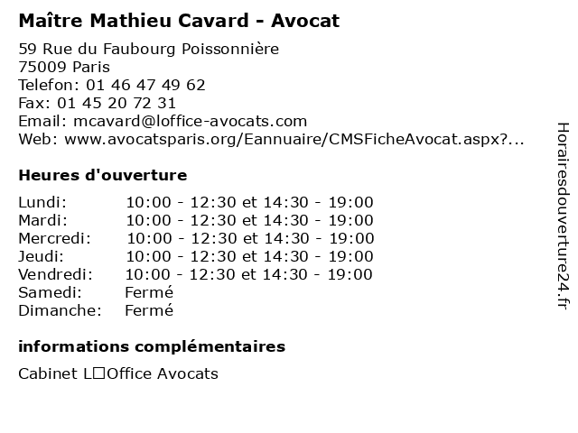 | Lundi | 10:00-12:30 et 14:30-19:00 |