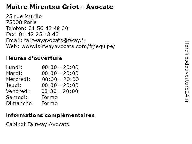 1 Le Griot Restaurant (Distance: 7,36 km) 64 Rue Cantagrel, 75013 Paris boissons, collations, griot, kouyate, le, restaurant, restaurants 2 Maître Aude Dewilde - Avocate (Distance: 0,00 km) 25 rue Murillo, 75008 Paris aude, avocate, avocats, cabinet, conseils, contentieux, dewilde, juridique, justice, litiges, maître, services 3 Maître Aurore du Marais - Avocate (Distance: 0,00 km) 25 rue Murillo, 75008 Paris aurore, avocate, avocats, cabinet, conseils, contentieux, du, juridique, justice, litiges, marais, maître, services 4 Maître Camille Lamothe - Avocate (Distance: 0,00 km) 25 rue Murillo, 75008 Paris avocate, avocats, cabinet, camille, conseils, contentieux, juridique, justice, lamothe, litiges, maître, services 5 Maître Donatienne Quirouard-Frileuse - Avocate (Distance: 0,00 km) 25 rue Murillo, 75008 Paris avocate, avocats, cabinet, conseils, contentieux, donatienne, frileuse, juridique, justice, litiges, maître, quirouard, services 6 Maître Fanny Roiena - Avocate (Distance: 0,00 km) 25 rue Murillo, 75008 Paris avocate, avocats, cabinet, conseils, contentieux, fanny, juridique, justice, litiges, maître, roiena, services |