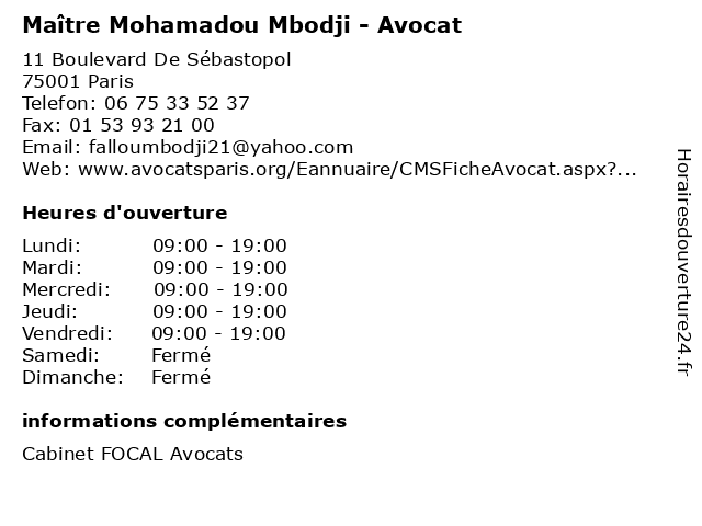 1 Maître Moussa Mbodji - Avocat (Distance: 3,41 km) 32 Rue de Monceau, 75008 Paris avocat, droit, maître, mbodji, moussa, négociation 2 Ly Abdoulaye-Mohamadou (Distance: 3,91 km) 3 Rue Henri Ribiere, 75019 Paris abdoulaye, ly, mohamadou, restaurants 3 Dr Mohamadou Balde - Psychiatre (Distance: 15,88 km) 2 Mail Renaissance, 95120 Ermont balde, dr, folie, mohamadou, psychiatre, psychiatrie, psychiatrique 4 Maître Balla Cisse - Avocat (Distance: 0,00 km) 11 boulevard Sebastopol, 75001 Paris avocat, balla, cisse, justice, lois, maitre, maître 5 Maître Dimitri Coudreau - Avocat (Distance: 0,00 km) 11 boulevard de Sébastopol, 75001 Paris avocat, avocats, cabinet, conseils, contentieux, coudreau, dimitri, juridique, justice, litiges, maître, services 6 Maître Léonard Zerbib - Avocat (Distance: 0,00 km) 11 Boulevard de Sébastopol, 75001 Paris avocat, avocats, cabinet, conseils, contentieux, juridique, justice, litiges, léonard, maître, services, zerbib |