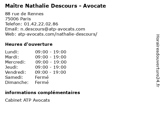 1 Maître Nathalie Descours Alfandari - Avocate (Distance: 0,00 km) 88 Rue de Rennes, 75006 Paris alfandari, avocate, avocats, cabinet, conseils, contentieux, descours, juridique, justice, litiges, maître, nathalie, services 2 Maître Nathalie Senyk - Avocate (Distance: 0,08 km) 5 rue Cassette, 75006 Paris avocate, avocats, cabinet, conseils, contentieux, juridique, justice, litiges, maître, nathalie, senyk, services 3 Dr Nathalie Cor - Ophtalmologue (Distance: 0,31 km) 36 Rue d'Assas, 75006 Paris consultation, cor, docteur, dr, med, médecin, médecine, nathalie, ophtalmologique, ophtalmologue, traitement 4 Dr Marie-Nathalie Jeanteur - Ophtalmologue (Distance: 0,31 km) 36 Rue d'Assas, 75006 Paris consultation, docteur, dr, jeanteur, marie, med, médecin, médecine, nathalie, ophtalmologue, traitement 5 Dr Nathalie Fitton - Orthoptiste (Distance: 0,31 km) 36 rue d'Assas, 75006 Paris 75006, arthur, dr, fitton, institut, nathalie, ophtalmologie, orthoptiste, paris, vernes 6 Dr Nathalie Launay - Radiologue (Distance: 0,31 km) 36 rue d'Assas, 75006 Paris 75006, arthur, dr, imagerie, institut, launay, médicale, nathalie, paris, radiologue, vernes |
