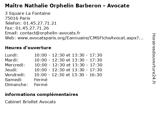 | Lundi | 10:00-12:30 et 13:30-17:30 |