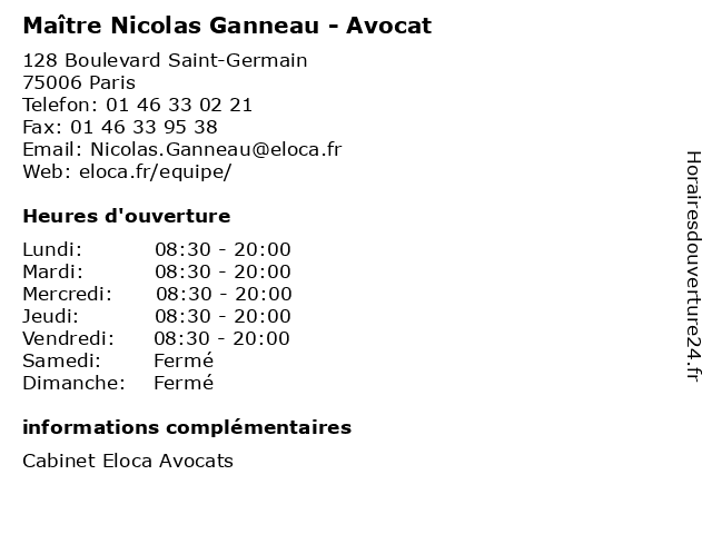 | Vendredi | 08:30-20:00 |