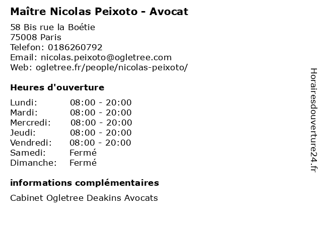 1 Maître Nicolas de Boynes - Avocat (Distance: 0,07 km) 51 Rue la Boétie, 75008 Paris avocat, boynes, de, droit, maître, nicolas, négociation 2 Maître Nicolas Karmin - Avocat (Distance: 0,07 km) 51 Rue la Boétie, 75008 Paris avocat, droit, karmin, maître, nicolas, négociation 3 Maître Pierre-Nicolas Amirault - Avocat (Distance: 0,16 km) 139 boulevard Haussmann, 75008 Paris amirault, avocat, droit, maître, nicolas, négociation, pierre 4 Maître Nicolas Viguié - Avocat (Distance: 0,22 km) 146 Boulevard Haussmann, 75008 Paris avocat, avocats, cabinet, conseils, contentieux, juridique, justice, litiges, maître, nicolas, services, viguié 5 Maître Nicolas Quoy - Avocat (Distance: 0,27 km) 7 rue de Téhéran, 75008 Paris avocat, droit, maître, nicolas, négociation, quoy 6 Maître Nicolas Rohfritsch - Avocat (Distance: 0,32 km) 17 avenue Matignon, 75008 Paris avocat, avocats, cabinet, conseils, contentieux, juridique, justice, litiges, maître, nicolas, rohfritsch, services |