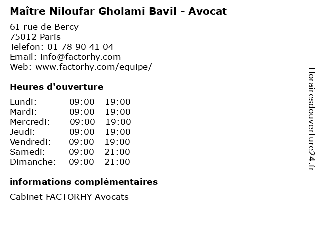 1 Dr. Assef Niloufar - Medecine Generale (Distance: 1,37 km) 25 Boulevard de Picpus, 75012 Paris assef, docteur, dr., generale, medecine, medecins, niloufar, sante 2 Dr Niloufar kossari - Néphrologue (Distance: 9,63 km) 25-27 Boulevard Victor Hugo, 92200 Neuilly-sur-Seine docteur, dr, kossari, médecin, niloufar, néphrologie, néphrologue 3 Dr Niloufar Kossari - Néphrologue (Distance: 12,61 km) 40 Rue Worth, 92150 Suresnes dr, kossari, médecins, médicaments, niloufar, néphrologue, santé, secrétariat, spécialiste 5 Maître Victor Roisin - Avocat (Distance: 0,00 km) 61 rue de Bercy, 75012 Paris avocat, avocats, cabinet, conseils, contentieux, juridique, justice, litiges, maître, roisin, services, victor 6 Maître Marius Buscarini - Avocat (Distance: 0,00 km) 61 rue de Bercy, 75012 Paris avocat, avocats, buscarini, cabinet, conseils, contentieux, juridique, justice, litiges, marius, maître, services |