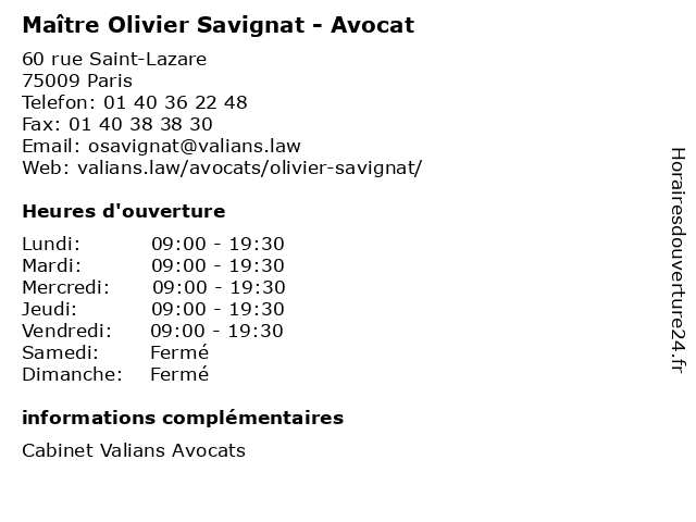 1 Maître Olivier Thibaud - Avocat (Distance: 0,16 km) 5/7 Avenue du Coq, 75009 Paris avocat, droit, maître, négociation, olivier, thibaud 2 Maître Julien-Olivier Marre - Avocat (Distance: 0,16 km) 5/7 Avenue du Coq, 75009 Paris avocat, droit, julien, marre, maître, négociation, olivier 3 Olivier Desforges (Distance: 0,29 km) 40 Boulevard Haussmann, 75009 Paris accessoires, boutique, desforges, linges, magasin, maison, olivier 4 Dr.Olivier Haas-Dentiste (Distance: 0,39 km) 11 Rue la Fayette, 75009 Paris consultation, dentiste, docteur, dr.olivier, haas, santé 5 Olivier Schreyers - Masseur-kinésithérapeute (Distance: 0,59 km) 42 Rue le Peletier, 75009 Paris kinésithérapeute, massages, masseur, mobilite, olivier, schreyers, secrétariat 6 Maitres Olivier Jamet & Anthony Savale - Notaires (Distance: 0,72 km) 98bis Boulevard Haussmann, 75008 Paris anthony, cabinet, conseil, immobilier, information, jamet, maitres, notaire, notaires, office, olivier, savale, successsion |