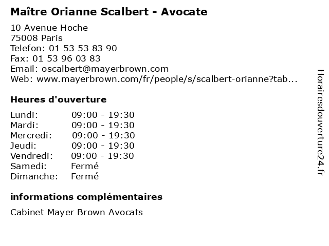 1 Maître Orianne Scalbert - Avocate (Distance: 0,00 km) 10 avenue Hoche, 75008 Paris avocate, avocats, cabinet, conseils, contentieux, juridique, justice, litiges, maître, orianne, scalbert, services 2 Dr François Scalbert - Cardiologue (Distance: 1,02 km) 4 Avenue Gourgaud, 75017 Paris cardiologue, coeur, docteur, dr, francois, françois, sante, scalbert 3 Maître Hugues Scalbert - Avocat (Distance: 1,34 km) 15 Rue de Laborde, 75008 Paris avocat, droit, hugues, maître, négociation, scalbert 4 Dr Orianne Houel - Chirurgien-dentiste (Distance: 2,60 km) 4 Place Jacques Froment, 75018 Paris chirurgien, chirurgien-dentiste, dentiste, dr, houel, médecins, médicaments, orianne, santé, secrétariat, spécialiste 5 Dr Orianne Colussi - Gastro-entérologue et hépatologue (Distance: 5,93 km) 40 Rue Worth, 92150 Suresnes colussi, dr, endocrinologue, entérologue, et, gastro, hépatologue, médecins, médicaments, orianne, santé, secrétariat, spécialiste 6 Maître Sarah Scalbert - Avocate (Distance: 7,32 km) 16 Boulevard de Charonne, 75020 Paris avocate, avocats, cabinet, conseils, contentieux, juridique, justice, litiges, maître, sarah, scalbert, services |