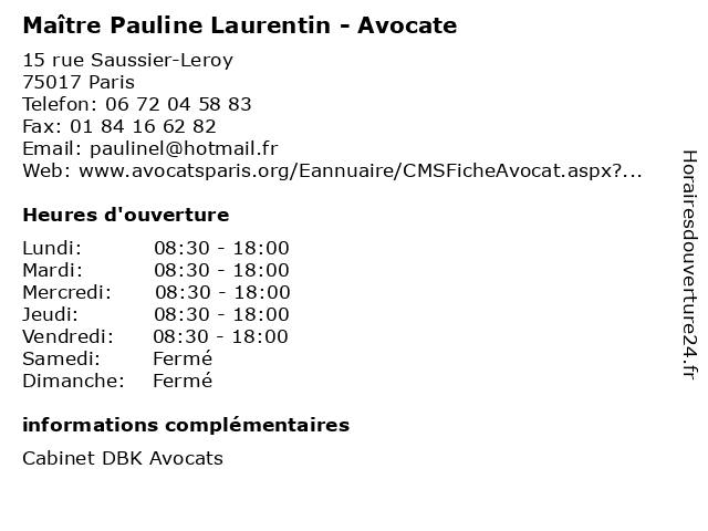 1 Maître Pauline Lethenet - Avocate (Distance: 0,34 km) 76 avenue de Wagram, 75017 Paris avocate, avocats, cabinet, conseils, contentieux, juridique, justice, lethenet, litiges, maître, pauline, services 2 Pauline Benaroch - Diététicienne (Distance: 0,48 km) 5 Villa Monceau, 75017 Paris aliment, benaroch, dieticien, diététicienne, medecin, nutrition, pauline 3 Dr Pauline El Kaim - Ophtalmologue (Distance: 0,71 km) 33-35 Rue de Chazelles, 75017 Paris dr, el, kaim, ophtalmologie, ophtalmologistes, ophtalmologue, pauline, vision 4 Pauline de Lasteyrie - Avocate (Distance: 0,94 km) 41 Avenue de Villiers, 75017 Paris avocat, avocate, bureau, de, droit, lasteyrie, pauline, service 5 Pauline Ceccon Loviconi - Pédicure-podologue (Distance: 0,94 km) 6 Place de la République Dominicaine, 75017 Paris ceccon, cheville, loviconi, orteil, pauline, pied, podologue, pédicure 6 Maître Pauline Reignier - Avocate (Distance: 1,31 km) 60 Boulevard Malesherbes, 75008 Paris avocate, avocats, cabinet, conseils, contentieux, juridique, justice, litiges, maître, pauline, reignier, services |