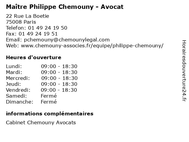 1 Maître Catherine Rubman-Chemouny - Avocate (Distance: 0,00 km) 22 Rue La Boetie, 75008 Paris avocate, avocats, cabinet, catherine, chemouny, conseils, contentieux, juridique, justice, litiges, maître, rubman, services 2 Philippe Gosselin (Distance: 1,78 km) 258 boulevard Saint Germain, 75007 Paris boulangeries, cakes, gosselin, macarons, pains, patisserie, philippe 3 Conservatoire Municipal Jean-Philippe Rameau (Distance: 2,77 km) 3 rue Mabillon, 75006 Paris conservatoire, conservatoires, equipement, jean, l'heure, livre, municipal, médiathèque, philippe, rameau, services 4 Conservatoire Municipal Jean-Philippe Rameau / Du 16 avril 2016 au 22 avril 2016 (Distance: 2,77 km) 3 rue Mabillon, 75006 Paris 16, 22, 2016, au, avril, conservatoire, conservatoires, du, equipement, jean, l'heure, livre, municipal, médiathèque, philippe, rameau, services 5 1001Pharmacies / Société Philippe Carlhammar Associés 2 (Distance: 3,29 km) 31 Rue du Commerce, 75015 Paris 1001pharmacies, associés, carlhammar, la médecine, la pharmacie, la santé, les soins, pharmacie, philippe, société 6 Deschamps Philippe (Distance: 3,67 km) 85 Rue des Rosiers, 93400 Saint-Ouen architecture, art forain, bijoux, céramiques, deschamps, mobilier, peintures & arts graphiques, philippe |