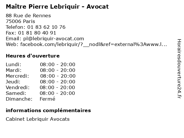 | Lundi | 08:00-20:00 |