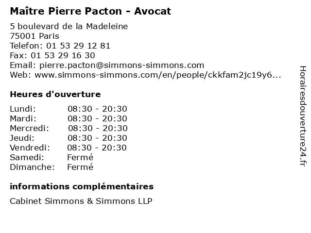 1 Vincent Pacton - Masseur-kinésithérapeute (Distance: 2,58 km) 37 Avenue Kleber, 75116 Paris bien-être, en, forme, kinésithérapeute, kinésithérapie, masseur, pacton, remise, rééducation, vincent 2 Maître Alexandre Vernisse - Avocat (Distance: 0,00 km) 5 boulevard de la Madeleine, 75001 Paris alexandre, avocat, droit, maître, négociation, vernisse 3 Maître Antoine Melchior - Avocat (Distance: 0,00 km) 5 boulevard de la Madeleine, 75001 Paris antoine, avocat, droit, maître, melchior, négociation 4 Maître Antoine Venier - Avocat (Distance: 0,00 km) 5 boulevard de la Madeleine, 75001 Paris antoine, avocat, droit, maître, négociation, venier 5 Maître Julia Levy - Avocat (Distance: 0,07 km) 48 Rue Cambon, 75001 Paris avocat, julia, justice, levy, lois, maitre, maître 6 Maître Sarah Bully - Avocat (Distance: 0,08 km) 10 Rue de Sèze, 75009 Paris avocat, bully, justice, lois, maitre, maître, sarah |