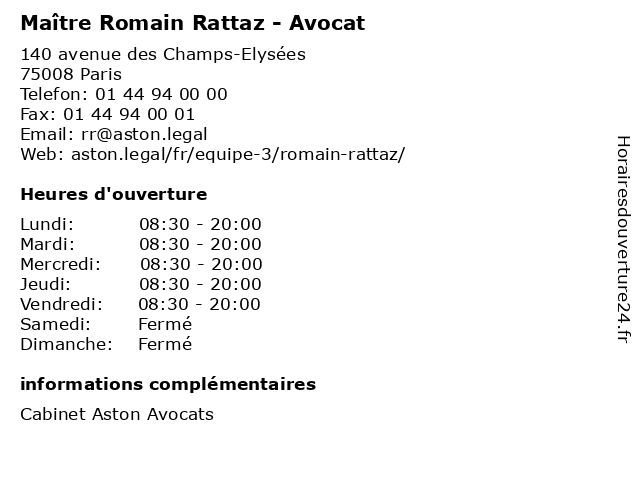 | Vendredi | 08:30-20:00 |
