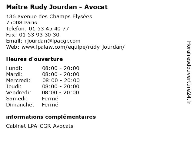 1 Maître Brigitte Garnier-Jourdan - Avocate (Distance: 0,18 km) 22 avenue de Friedland, 75008 Paris avocate, avocats, brigitte, cabinet, conseils, contentieux, garnier, jourdan, juridique, justice, litiges, maître, services 3 Maître Rudy Rabelle - Avocat (Distance: 0,48 km) 34 Rue La Perouse, 75116 Paris avocat, avocats, cabinet, conseils, contentieux, juridique, justice, litiges, maître, rabelle, rudy, services 4 Maître Rudy Marouani - Avocat (Distance: 0,57 km) 26 avenue Kléber, 75116 Paris avocat, droit, marouani, maître, négociation, rudy 5 Maître Laurent Jourdan - Avocat (Distance: 0,75 km) 40 Rue de Courcelles, 75008 Paris avocat, droit, jourdan, laurent, maître, négociation 6 Dr Nicole Friboug Jourdan - Rhumatologue (Distance: 0,85 km) 21 Rue de Chazelles, 75017 Paris dr, friboug, jourdan, médecin, médecine, médical, nicole, pharmaceutique, rhumatologue, secretariat, traitement |