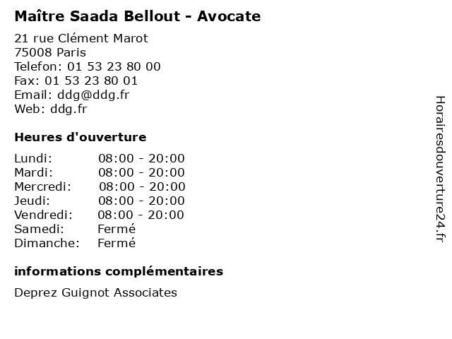 1 Maître Benjamin Saada - Avocat (Distance: 0,24 km) 51 rue François 1er, 75008 Paris avocat, benjamin, droit, maître, négociation, saada 2 Jonathan Saada - Avocat (Distance: 2,29 km) 184 Boulevard Pereire, 75017 Paris avocat, avocats, cabinet, jonathan, représentation, saada, service 3 Restaurant Zaza par Yoni Saada (Distance: 2,44 km) 51 Passage Choiseul, 75002 Paris bistrot, brasserie, café, par, restaurant, restauration, saada, yoni, zaza 4 Saada Chloe (Distance: 3,66 km) 110 Rue Du Faubourg Poissonniere, 75010 Paris boulangeries, chloe, détail, saada 6 Saada Charles Sani (Distance: 4,35 km) 17 Rue Des Rosiers, 75004 Paris boucheries, charles, poissonneries, saada, sani |