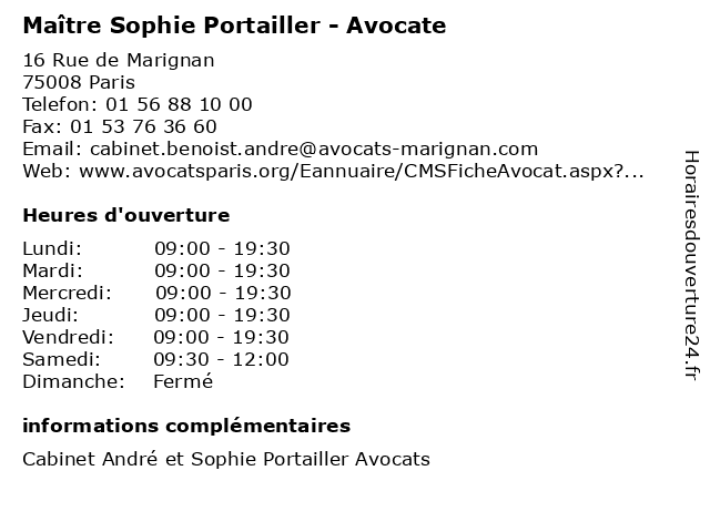 1 Maître Sophie Mortreux - Avocate (Distance: 0,03 km) 18 Rue de Marignan, 75008 Paris avocate, avocats, cabinet, conseils, contentieux, juridique, justice, litiges, maître, mortreux, services, sophie 2 Maître Sophie Corlett - Avocate (Distance: 0,05 km) 25 Rue de Marignan, 75008 Paris avocat, avocate, corlett, droit, maître, négociation, sophie 3 Dr Sophie Lanotte - Médecin du travail (Distance: 0,16 km) 26 Rue Marbeuf, 75008 Paris consultation, docteur, dr, du, lanotte, med, médecin, sophie, traitement, travail 4 Maître Sophie Caulliez - Avocate (Distance: 0,35 km) 1 rue Paul Baudry, 75008 Paris avocat, avocate, caulliez, droids, justice, maître, sophie 5 Maître Anne-Sophie Siebert - Avocate (Distance: 0,38 km) 1 rue Paul Baudry, 75008 Paris anne, avocate, avocats, cabinet, conseils, contentieux, juridique, justice, litiges, maître, services, siebert, sophie 6 Maître Anne-Sophie Verdalle - Avocat (Distance: 0,47 km) 21 Rue d'Artois, 75008 Paris anne, avocat, justice, lois, maitre, maître, sophie, verdalle |