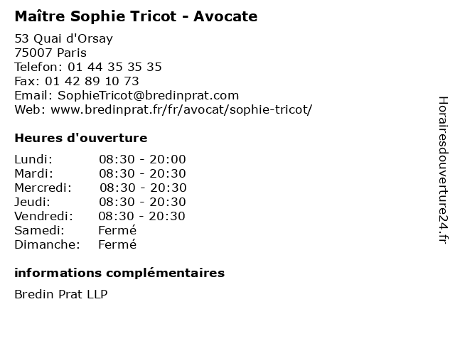 1 Maître Anne-Sophie Arbide-Vignarte - Avocate (Distance: 0,00 km) 53 Quai d'Orsay, 75007 Paris anne, arbide, avocat, avocate, droit, maître, négociation, sophie, vignarte 2 Maître Sophie Barruet - Avocate (Distance: 1,19 km) 33 bis rue du Faubourg, 34000 Montpellier avocate, avocats, barruet, civils, droits, juridiques, maître, sophie 3 Maître Alix Tricot - Avocat (Distance: 1,38 km) 40/42 rue la Boétie, 75008 Paris alix, avocat, avocats, cabinet, conseils, contentieux, juridique, justice, litiges, maître, services, tricot 4 Maître Jérôme Tricot - Avocat (Distance: 1,96 km) 3 rue Anatole de la Forge, 75017 Paris avocat, avocats, cabinet, conseils, contentieux, juridique, justice, jérôme, litiges, maître, services, tricot 5 Elodie Tricot - Psychologue (Distance: 2,29 km) 5 Rue Saint Pétersbourg, 75008 Paris cabinets, elodie, médecins, psychologue, secrétariat, thérapies, tricot 6 Dr Anne-Sophie Carrie - Pneumologue (Distance: 2,35 km) 10 Rue Edouard Detaille,, 75017 Paris anne, carrie, dr, médecins, médicaments, pneumologue, santé, secrétariat, sophie, spécialiste |