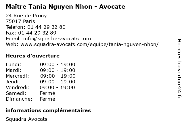 1 Maître Yen Nguyen - Avocate (Distance: 0,13 km) 29 rue Fortuny, 75017 Paris avocate, avocats, cabinet, conseils, contentieux, juridique, justice, litiges, maître, nguyen, services, yen 2 Maître Margaux Nguyen Chanh - Avocate (Distance: 0,15 km) 70 Boulevard de Courcelles, 75017 Paris avocate, avocats, cabinet, chanh, conseils, contentieux, juridique, justice, litiges, margaux, maître, nguyen, services 3 Medecin Hung The Nguyen (Acupuncteur) (Distance: 0,86 km) 141 Boulevard Pereire, 75017 Paris acupuncteur, docteur, hung, medecin, nguyen, sante, services, the 4 Maître Laura Nguyen-Lapierre - Avocate (Distance: 1,05 km) 1 rue Paul Baudry, 75008 Paris avocat, avocate, droit, lapierre, laura, maître, nguyen, négociation 5 Dr Dinh-Qui Nguyen - Oto-Rhino-Laryngologue (ORL) (Distance: 1,28 km) 27 rue de Turin, 75008 Paris consultation, dinh, docteur, dr, laryngologie, laryngologue, nguyen, orl, oto, qui, rhino, santé 6 Dr Tania Abou Abdallah - Psychiatre (Distance: 1,68 km) 22 Rue de Vintimille, 75009 Paris abdallah, abou, cabinet, dr, mentale, psychiatre, psychiatrie, santé, tania, thérapie |