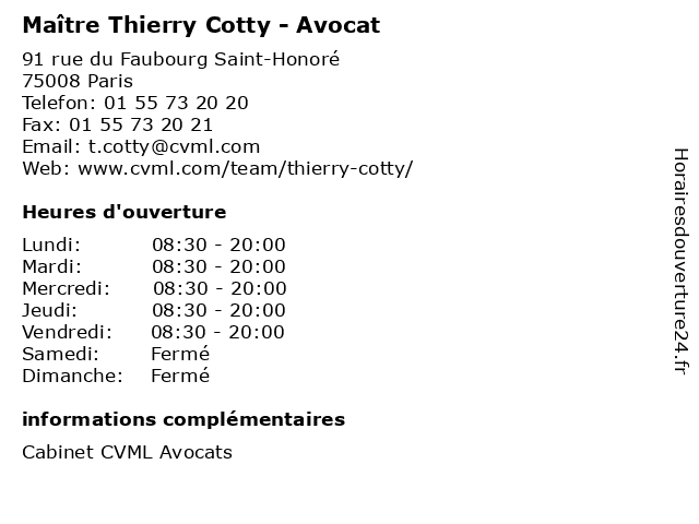 | Vendredi | 08:30-20:00 |