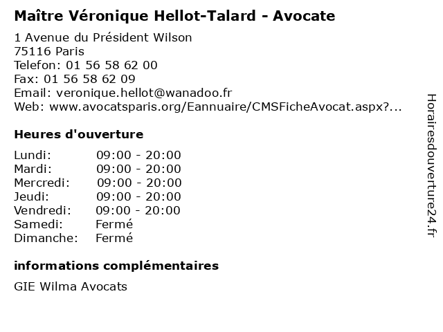 1 Maître Marie-Véronique Le Fevre - Avocate (Distance: 0,00 km) 1 Avenue du Président Wilson, 75116 Paris avocate, avocats, cabinet, conseils, contentieux, fevre, juridique, justice, le, litiges, marie, maître, services, véronique 2 Maître Véronique Lesson - Avocate (Distance: 0,24 km) 26 Avenue Marceau, 75008 Paris avocate, avocats, cabinet, conseils, contentieux, juridique, justice, lesson, litiges, maître, services, véronique 3 Maître Véronique Saliceti - Avocate (Distance: 0,35 km) 25 avenue George V, 75008 Paris avocate, avocats, cabinet, conseils, contentieux, juridique, justice, litiges, maître, saliceti, services, véronique 4 Maître Véronique Mauduit - Avocate (Distance: 0,41 km) 21 rue Clément Marot, 75008 Paris avocate, avocats, cabinet, conseils, contentieux, juridique, justice, litiges, mauduit, maître, services, véronique 5 Maître Véronique Bollani - Avocate (Distance: 0,76 km) 4 Rue Galilée, 75116 Paris avocate, avocats, bollani, cabinet, conseils, contentieux, juridique, justice, litiges, maître, services, véronique 6 Maître Véronique Sélinsky - Avocate (Distance: 0,76 km) 11 rue Galilée, 75116 Paris avocat, avocate, droit, maître, négociation, sélinsky, véronique |