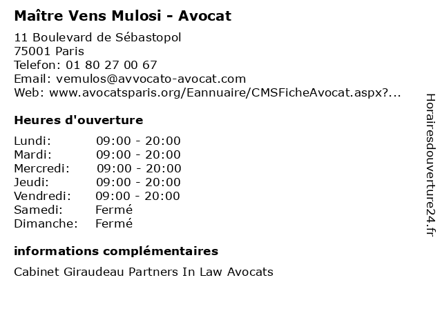2 O'509 Grill (Distance: 11,61 km) O 509 Grill, 93240 Stains 509, butho, grill, restaurants, simonis, vens 3 Maître Balla Cisse - Avocat (Distance: 0,00 km) 11 boulevard Sebastopol, 75001 Paris avocat, balla, cisse, justice, lois, maitre, maître 4 Maître Dimitri Coudreau - Avocat (Distance: 0,00 km) 11 boulevard de Sébastopol, 75001 Paris avocat, avocats, cabinet, conseils, contentieux, coudreau, dimitri, juridique, justice, litiges, maître, services 5 Maître Léonard Zerbib - Avocat (Distance: 0,00 km) 11 Boulevard de Sébastopol, 75001 Paris avocat, avocats, cabinet, conseils, contentieux, juridique, justice, litiges, léonard, maître, services, zerbib 6 Maître Tommaso Stella - Avocat (Distance: 0,00 km) 11 Boulevard de Sébastopol, 75001 Paris avocat, avocats, cabinet, conseils, contentieux, juridique, justice, litiges, maître, services, stella, tommaso |