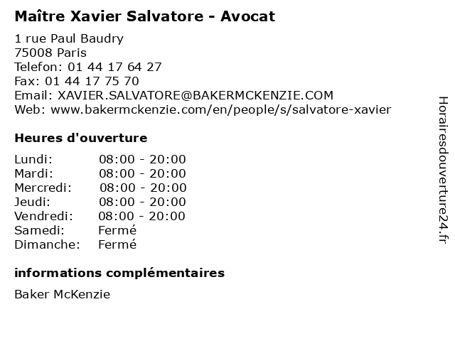 1 Maître François-Xavier Naime - Avocat (Distance: 0,00 km) 1 rue Paul Baudry, 75008 Paris avocat, droit, françois, maître, naime, négociation, xavier 2 Xavier Jaffré Communication (Distance: 0,30 km) 78 Champs Elysées, 75008 Paris agence, agence de communication, communication, jaffré, publicité, service, xavier 3 Maître Xavier Duquenne - Avocat (Distance: 0,30 km) 75 Avenue des Champs-Élysées, 75008 Paris avocat, droit, duquenne, maître, négociation, xavier 4 Maître François-Xavier Langlais - Avocat (Distance: 0,42 km) 37 rue de Courcelles, 75008 Paris avocat, droit, françois, langlais, maître, négociation, xavier 5 Maître Xavier Doumen - Avocat (Distance: 0,49 km) 17 avenue Matignon, 75008 Paris avocat, doumen, droit, maître, négociation, xavier 6 Maître Xavier Rollet - Avocat (Distance: 0,51 km) 40 Rue de Courcelles, 75008 Paris avocat, droit, maître, négociation, rollet, xavier |