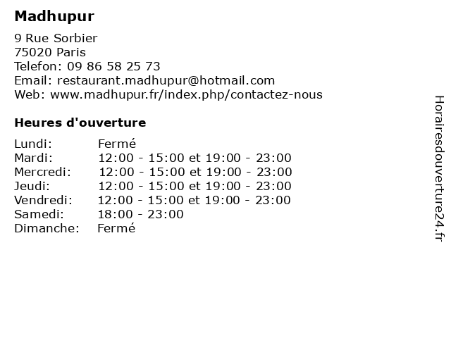 | Mardi | 12:00-15:00 et 19:00-23:00 |