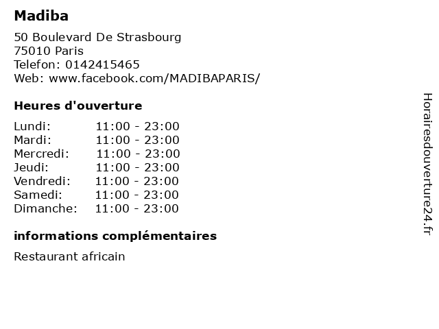1 Madiba (Distance: 0,01 km) 50 Boulevard de Strasbourg, 75010 Paris bar, bistro, bistrot, brasserie, café, madiba, restaurant, restauration 2 Crèche familiale Madiba (Distance: 12,35 km) 6-8 allée Saint-Just, 95870 Bezons accueil, creche, crèche, enfant, familiale, garderie, madiba, éveil 3 5 Pailles (Distance: 0,19 km) 79 Rue Du Faubourg Saint Denis, 75010 Paris brunch, café, pailles, restaurant, restauration 4 Le Cham Bar (Distance: 0,25 km) 10 Rue des Petites Ecuries, 75010 Paris bar, boissons, cham, le, nourriture, restaurant 5 Blackburn Coffee (Distance: 0,27 km) 52 Rue du Faubourg Saint-Martin, 75010 Paris bar, bistro, bistrot, blackburn, brasserie, café, coffee, pub, restaurant, restauration, resto 6 Les Vinaigriers (Distance: 0,33 km) 42 Rue Des Vinaigriers, 75010 Paris bar, bistro, brasserie, café, les, restaurant, traditionnel, vinaigriers |