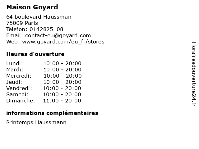 1 Maison Goyard (Distance: 0,78 km) 16 Place Vendôme, 75001 Paris chaussures, goyard, honore, magasins, maison, maroquinerie 2 Maison Goyard (Distance: 0,85 km) 233 Rue Saint-Honoré, 75001 Paris accessoires, bagages, goyard, maison, maroquinerie, sac 3 Maison Goyard - Chic du Chien (Distance: 0,84 km) 352 Rue Saint-Honoré, 75001 Paris accessoires, bagages, chic, chien, du, goyard, maison, maroquinerie, sac 4 Maître Pascal Goyard - Avocat (Distance: 2,62 km) 10 Bis Avenue de la Grande Armée, 75017 Paris avocat, avocats, cabinet, conseils, contentieux, goyard, juridique, justice, litiges, maître, pascal, services 5 Maître Nathalie Goyard - Avocate (Distance: 2,62 km) 10 Bis Avenue de la Grande Armée, 75017 Paris avocate, avocats, cabinet, conseils, contentieux, goyard, juridique, justice, litiges, maître, nathalie, services 6 Dr Céline Goyard - Pneumologue (Distance: 7,76 km) 40 Rue Worth, 92150 Suresnes 92150, céline, dr, foch, goyard, hôpital, pneumologue, suresnes |