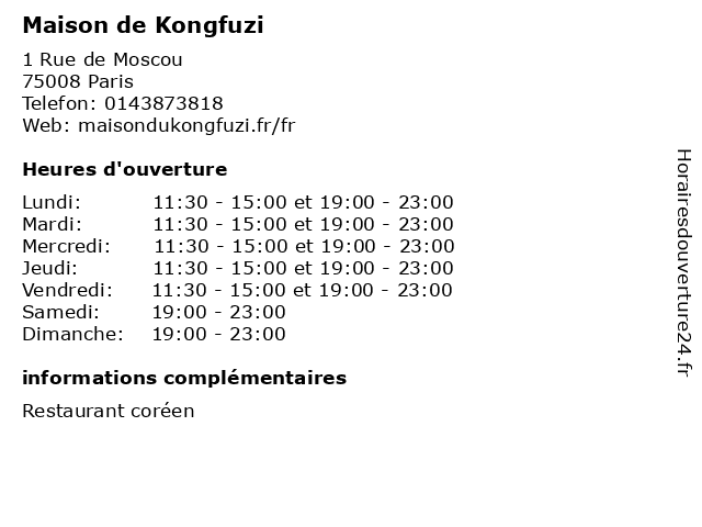 | Lundi | 11:30-15:00 et 19:00-23:00 |