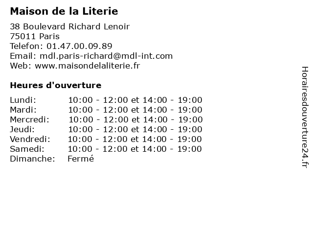 | Samedi | 10:00-12:00 et 14:00-19:00 |