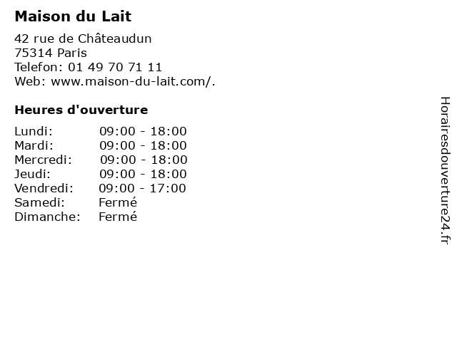 1 Maison du Lait (Distance: 0,00 km) 42 rue de Châteaudun, 75009 Paris du, filière, française, lait, laitière, maison, syndicat 2 La Goutte de Lait (Distance: 1,31 km) 48 Rue Du Chevalier De La Barre, 75018 Paris de, glaces, goutte, la, lait, sensi, tutti 3 Au Cochon de Lait (Distance: 4,23 km) 23 Avenue Corentin Cariou, 75019 Paris au, bar, bistrot, brasserie, café, cochon, de, lait, restaurant, restauration 4 5 Crèche Familiale Goutte De Lait (Distance: 7,39 km) 109 Avenue Jean Jaurès, 93120 La Courneuve caregivers houses, child care, crèche, de, familiale, family home, goutte, home care, kindergartens, lait, micro-nurseries, parental home 6 Quart de Lait (Distance: 11,98 km) 13 Boulevard de la Résistance, 95100 Argenteuil argenteuil, bio, de, fabricant, lait, quart, yaourts |