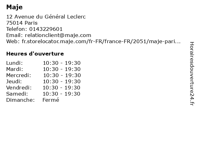 1 Maje (Distance: 2,03 km) 24 rue de Sèvres, 75007 Paris accessoires, habillements, maje, mode, vêtement 2 Maje (Distance: 2,08 km) 15 rue de Sèvres, 75007 Paris accessoires, habillements, maje, mode, vêtement 3 Maje (Distance: 2,99 km) 9 rue de la Monnaie, 75001 Paris accessoires, habillements, maje, mode, vêtement 4 Maje (Distance: 3,18 km) 55 Rue De La Verrerie, 75004 Paris accesoires, femme, jeans, maje, pantalons, tendances, vestes, vetements 5 Maje (Distance: 3,71 km) 350 Rue Saint-Honoré, 75001 Paris accessoires, boutique, chaussures, habillement, maje 6 |