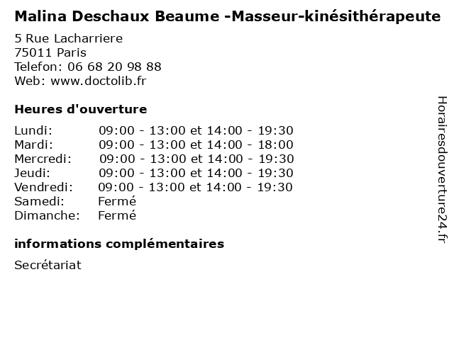 | Lundi | 09:00-13:00 et 14:00-19:30 |