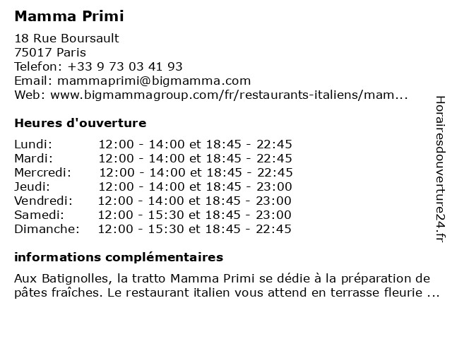 | Samedi | 12:00-15:30 et 18:45-23:00 |