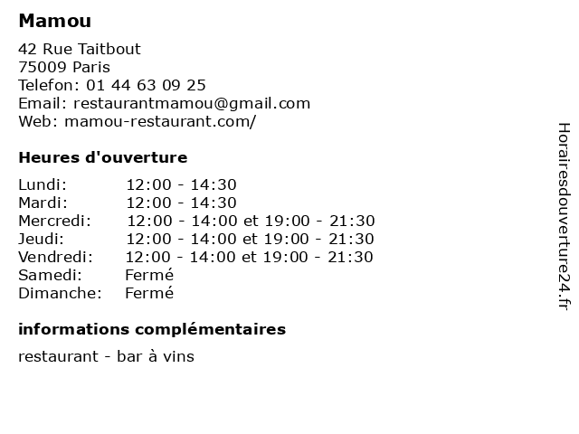 Jeudi | 12:00-14:00 et 19:00-21:30 |