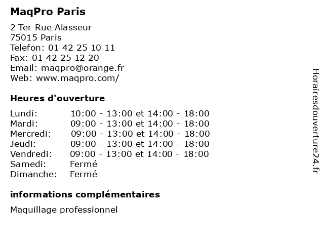 | Lundi | 10:00-13:00 et 14:00-18:00 |