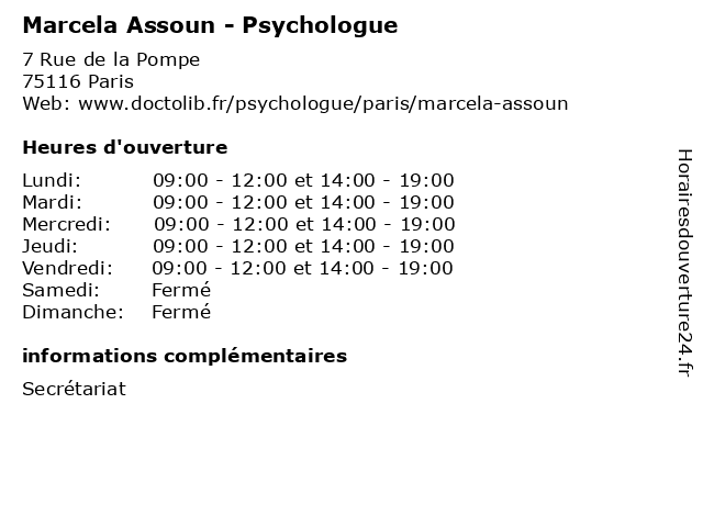 | Lundi | 09:00-12:00 et 14:00-19:00 |