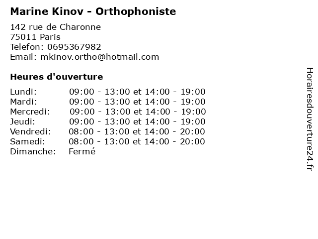 | Lundi | 09:00-13:00 et 14:00-19:00 |