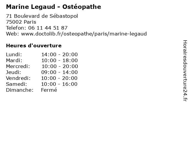 | Mercredi | 10:00-20:00 |