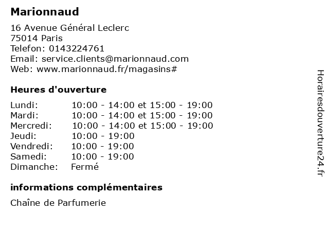 | Mardi | 10:00-14:00 et 15:00-19:00 |