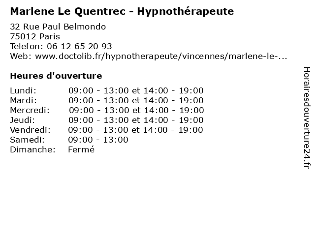 | Lundi | 09:00-13:00 et 14:00-19:00 |
